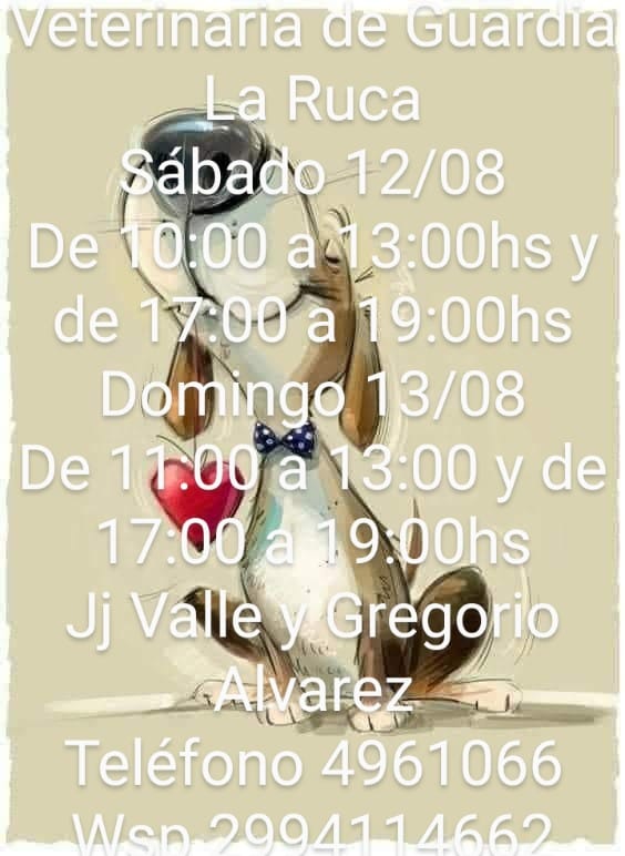 Este domingo la veterinaria de turno para la asistencia de las mascotas es La Ruca.