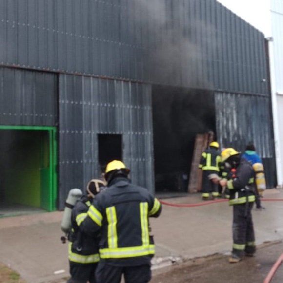 Desde esta mañana, los bomberos voluntarios de Plaza Huincul trabajaron en la extinción de un incendio en el depósito de mercaderías de Vía Cargo.