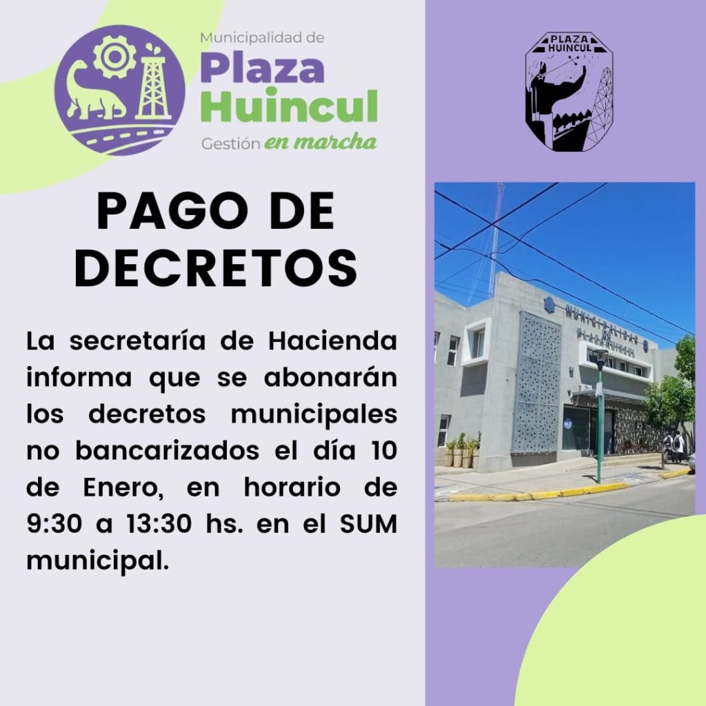 Desde el municipio huinculense se informó que hoy en el horario de 9:30 a 13:30, se abonará al personal comprendido en los Decretos.