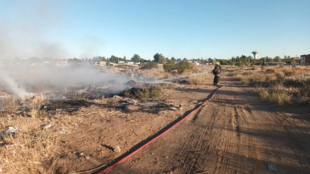 Esta tarde, los bomberos voluntarios de Plaza Huincul acudieron a sofocar un incendio de pastizales que se registró cerca de la ruta provincial N° 17, en inmediaciones al hotel.