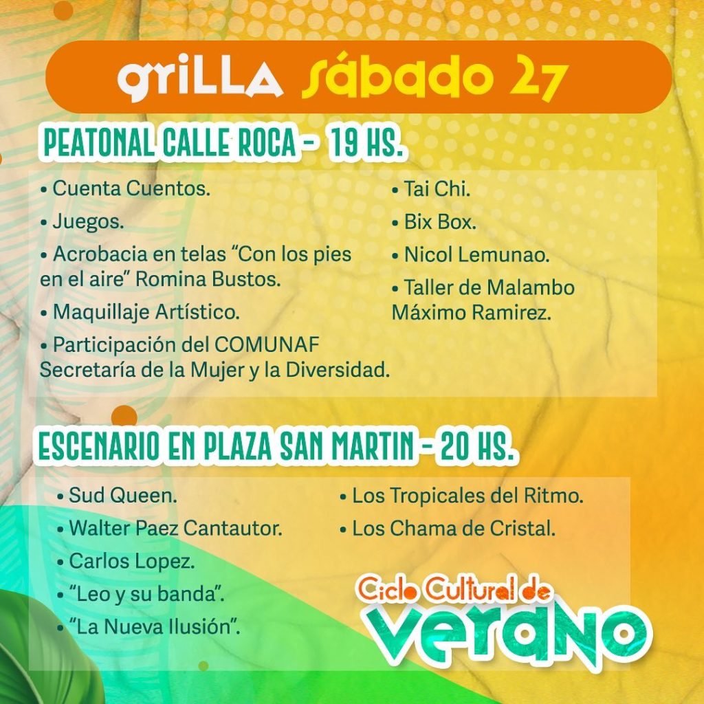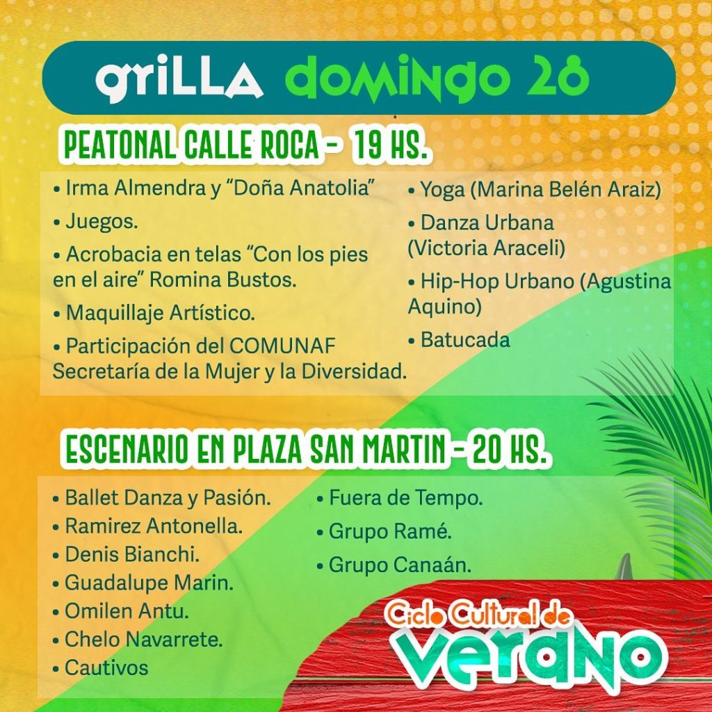 Con la participación del COMUNAF Secretaría de la Mujer y la Diversidad en ambos días, el Ciclo Cultural de Verano no solo promete ser una celebración del arte y la cultura, sino también un espacio inclusivo que refleja la diversidad de la comunidad de Cutral Co.