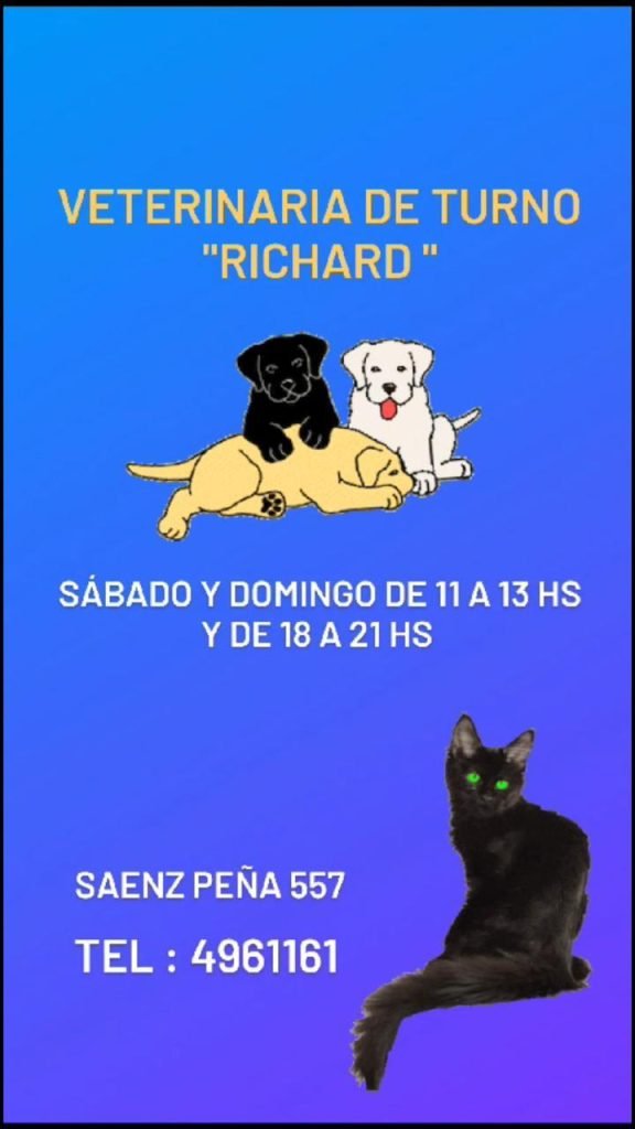 La veterinaria de turno para este domingo es Richard, ubicada en la calle Sáenz Peña 557 de Cutral Co.