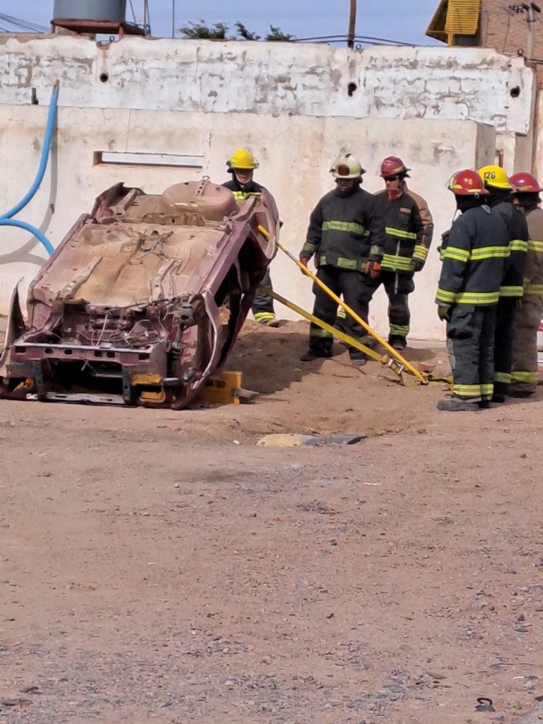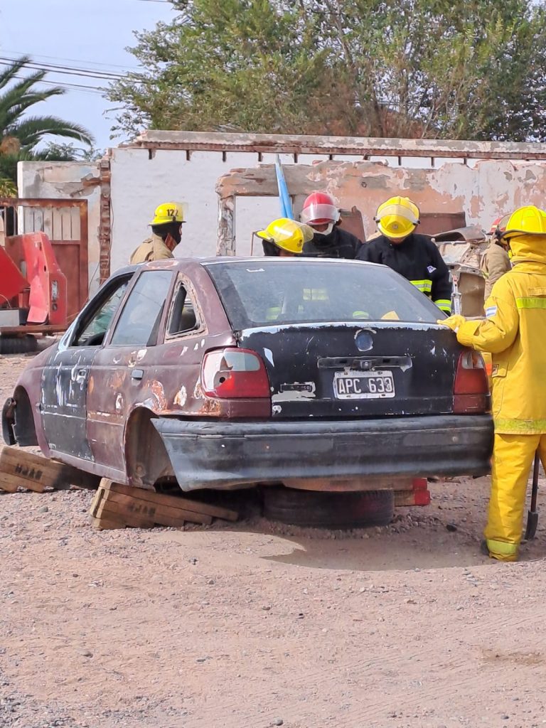 En la Central 17° del cuartel de bomberos voluntarios en Plaza Huincul se concretó esta tarde una jornada de formación sobre rescate vehicular.