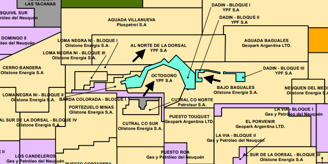 Dadín es otro de los yacimientos históricos y Al Norte de la Dorsal también forma parte del mismo bloque de yacimientos convencionales que han abastecido tradicionalmente a la refinería de YPF, en Plaza Huincul.