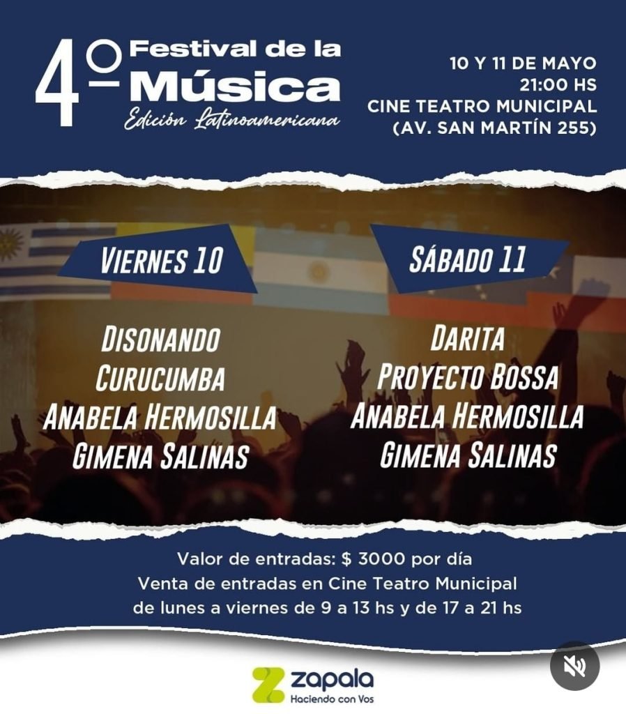 La grilla para el día de hoy es la siguiente; Disonando, Curucumba, Anabela Hermosilla y cierra Gimena Salinas. Para el día sábado además de Dara se presentará Proyecto Bossa y nuevamente Anabela Hermosilla y Gimena Salinas.