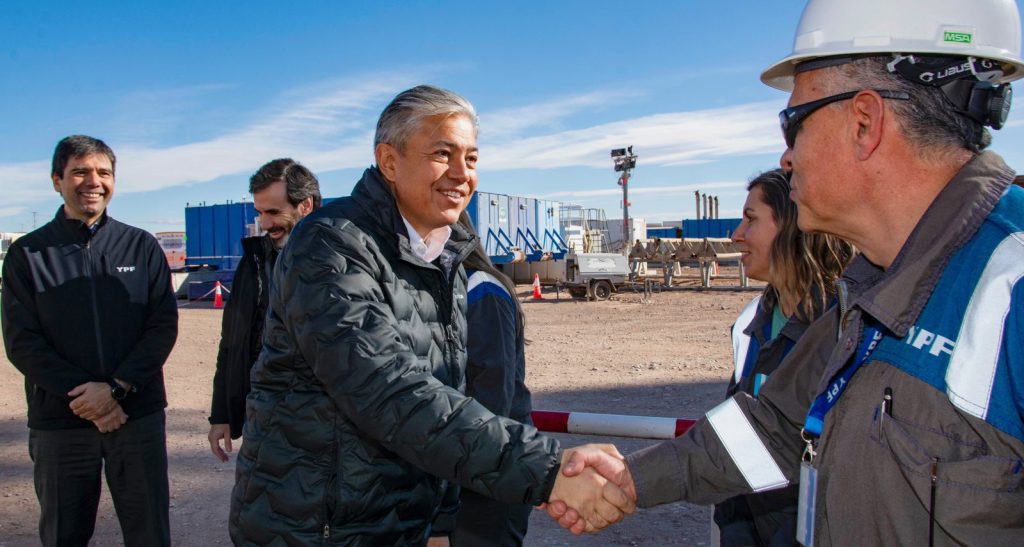 Fue ahí donde el gobernador anunció los trámites para la aprobación de un crédito por 200 millones de dólares. Minutos más tarde se encontró con Caputo, con quien recorrió instalaciones de YPF en Vaca Muerta. De ese encuentro también participó el presidente de dicha compañía, Horacio Marín.