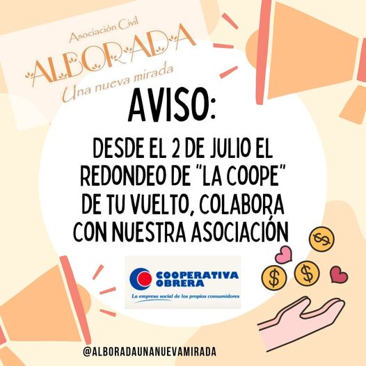 A partir del martes 2 de julio, los clientes del supermercado La Cooperativa Obrera tendrán la oportunidad de contribuir con su vuelto a la Asociación Civil “Alborada Una Nueva Mirada”. Esta organización, con más de 12 años de dedicación, trabaja en las comunidades de Cutral Co y Plaza Huincul, brindando apoyo a personas con discapacidad.