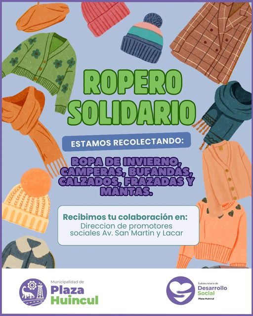 El ropero solidario, ubicado en la dirección de Promotores Sociales en la esquina de Av. San Martín y Lacar, recibe donaciones de ropa de invierno, incluyendo camperas, bufandas, calzados, frazadas y mantas. La convocatoria está abierta a toda la comunidad, invitando a quienes puedan colaborar a acercar sus donaciones.