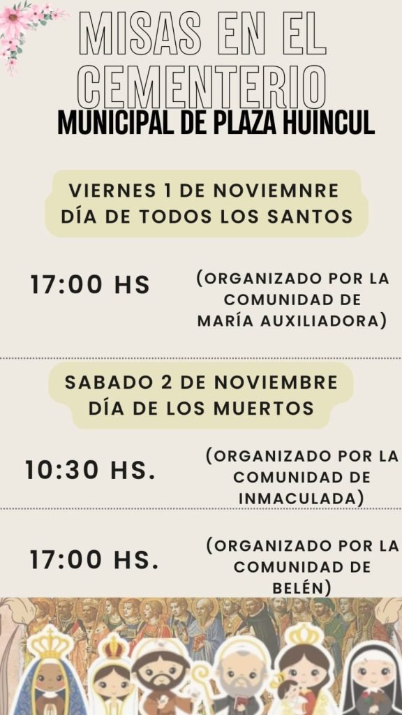 Como cada 1 de noviembre, la grey católica rinde homenaje a los santos y el 2 de los difuntos. En el cementerio de Plaza Huincul, las comunidades organizaron las misas .