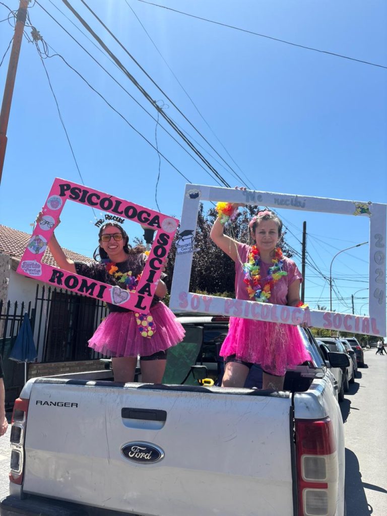 “Romina Basualdo y Paula Basualdo, nuevas profesionales en la comarca. Queremos felicitar a las flamantes psicólogas sociales 🎉💕, éxitos!!”