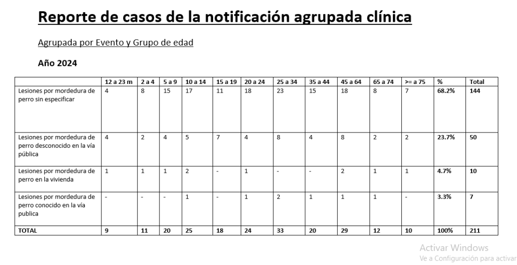 Del total, el 68,2 % corresponden a heridas provocadas por perros sin especificar. El 23,7 % fueron por perros desconocidos en la vía pública; el 4,7 % ocurrieron en la vivienda y el 3,3 % fueron mordeduras de perros conocidos que están en la vía pública.