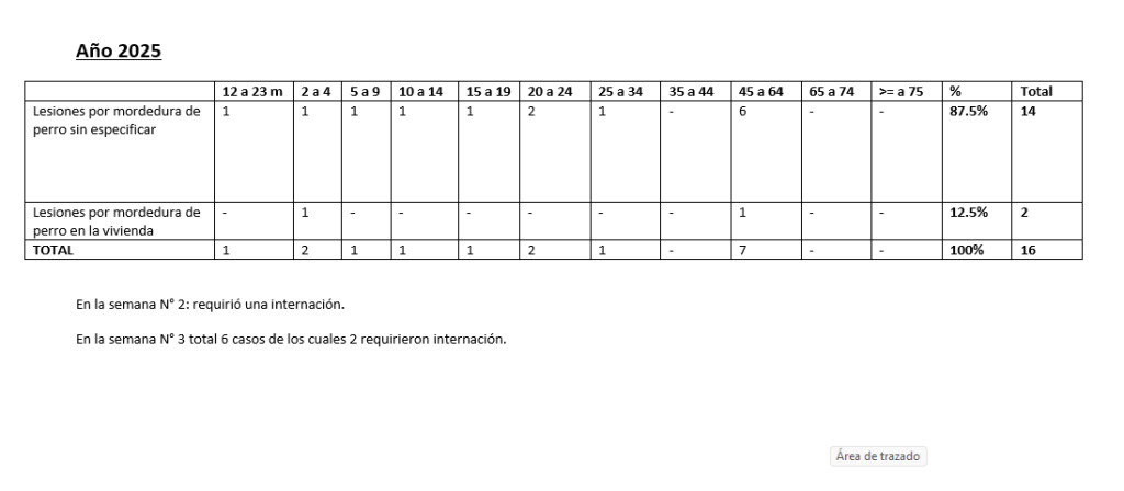 Mientras que en 2025 se contabilizaron 22 casos. De ese total, 14 fueron clasificados como heridas por mordeduras de perro sin identificar y dos sucedidos en la vivienda.
