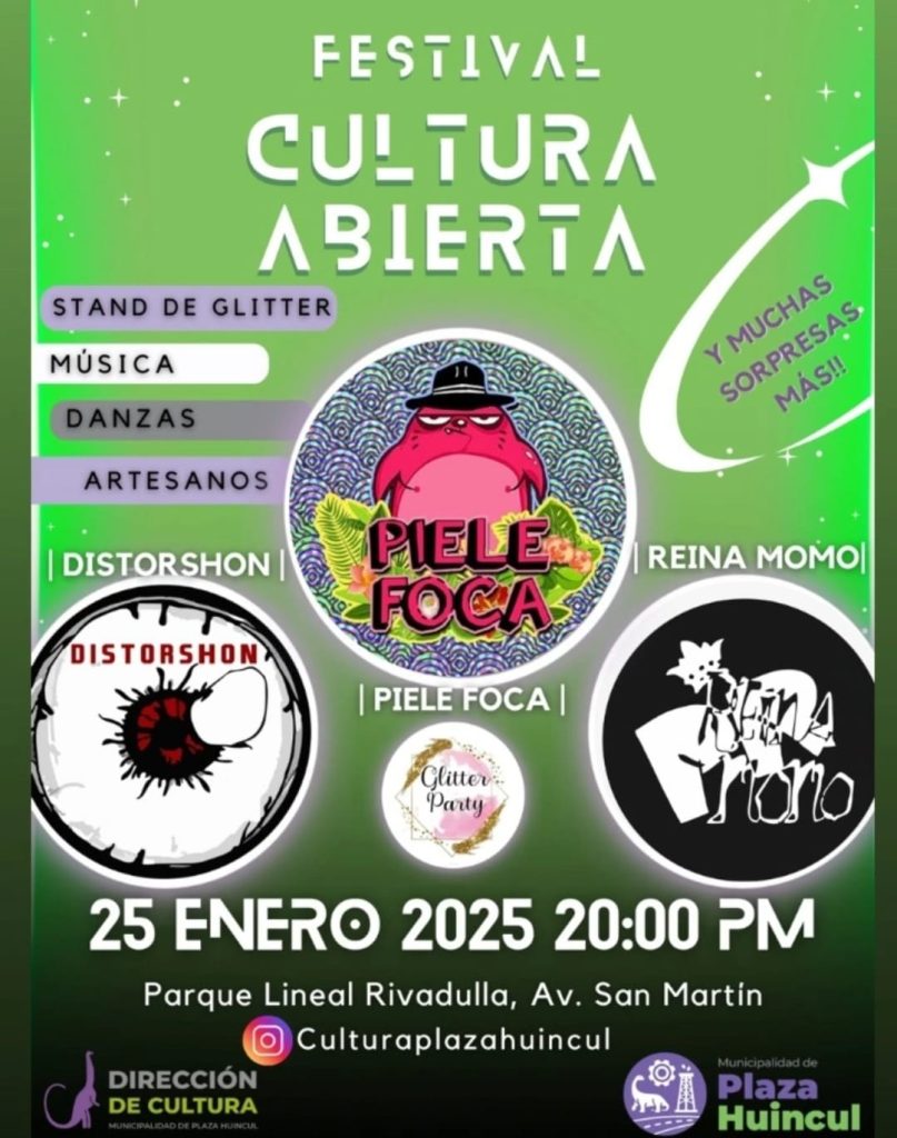 En Plaza Huincul, hoy desde las 20 empezará la edición 2025 del ciclo Cultura Abierta. La cita es en el parque Lineal Carlos Rivadulla.