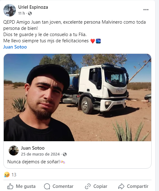 Las causas del deceso serán establecidas fehacientemente por el personal forense que realizará la autopsia. Mientras se multiplican los mensajes de tristeza por lo ocurrido de familiares y seres queridos de Soto.