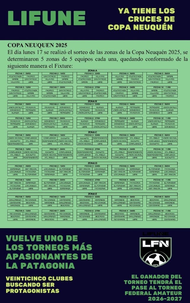 En la jornada de ayer se conoció el fixture para cada grupo de una nueva edición de la Copa Neuquén. Alianza y Petrolero se enfrentarán en la cuarta fecha.