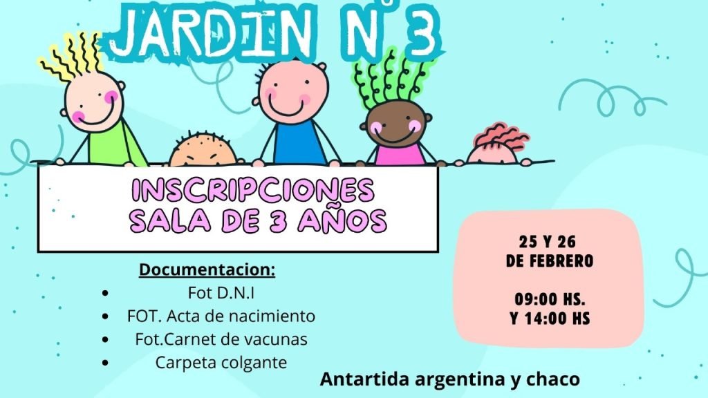 El Jardín de Infantes N°3 de Plaza Huincul anunció la apertura de inscripciones para la Sala de 3 años, dirigida a las familias interesadas en matricular a sus hijos en el ciclo lectivo 2025.