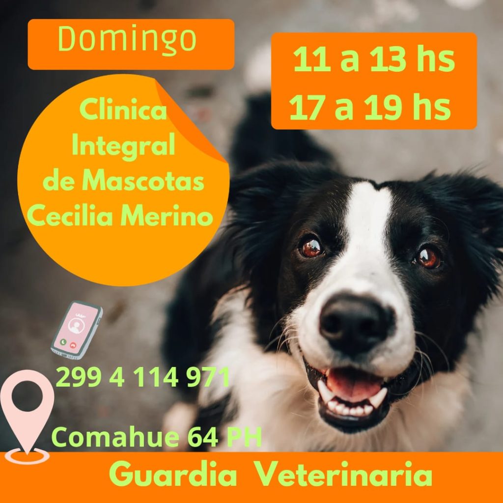 Este domingo la veterinaria de turno será la de la doctora Cecilia Merino, que atiende en calle Comahue al 64 de la ciudad de Plaza Huincul.