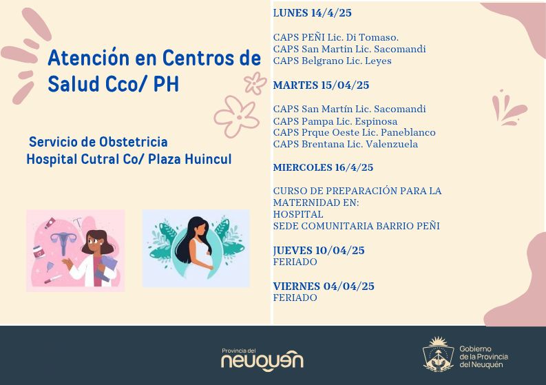 Con el objetivo de acercar la atención médica a los barrios y garantizar la continuidad del cuidado prenatal, el servicio de obstetricia del hospital Cutral Co y Plaza Huincul continuará esta semana con su esquema de atención descentralizada en los distintos Centros de Atención Primaria de la Salud (CAPS) de ambas ciudades.