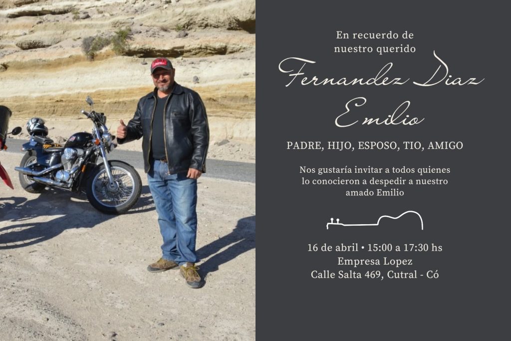 En recuerdo de nuestro querido Fernández Díaz Emilio, padre, hijo, esposo, tío, amigo”.