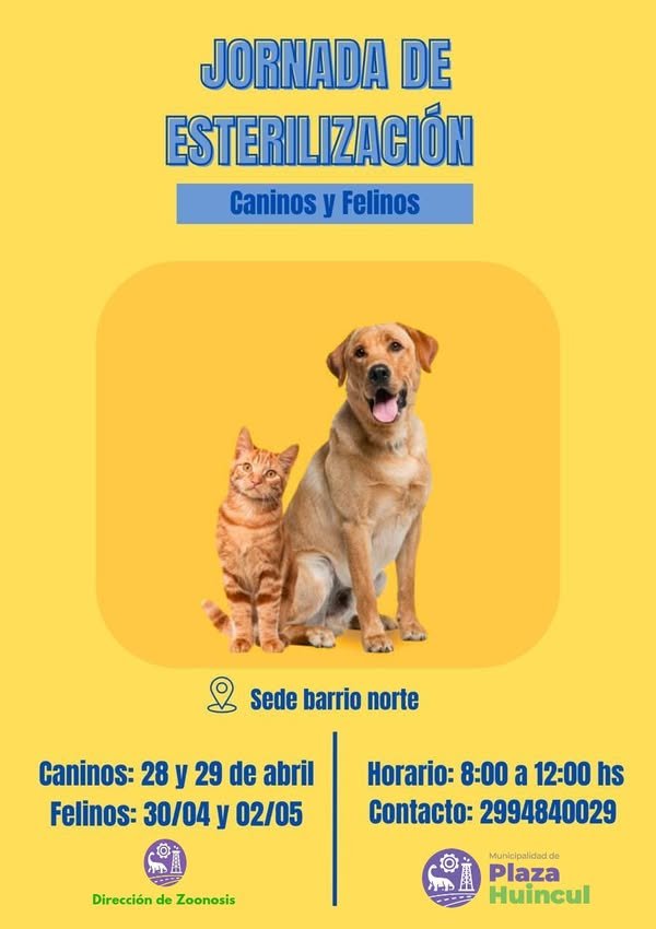 La dirección de Zoonosis de de Plaza Huincul informó que llevará adelante una nueva jornada gratuita de esterilización destinada a caninos y felinos, con el objetivo de fomentar el cuidado responsable de las mascotas y controlar la población animal en la ciudad.
