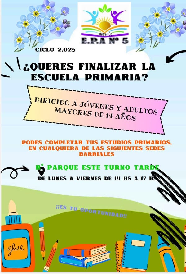 Se lanzó una nueva edición del ciclo escolar destinado a jóvenes y adultos mayores de 14 años que deseen finalizar sus estudios primarios. El programa, denominado Ciclo 2025, está organizado por la E.P.A. Nº 5.