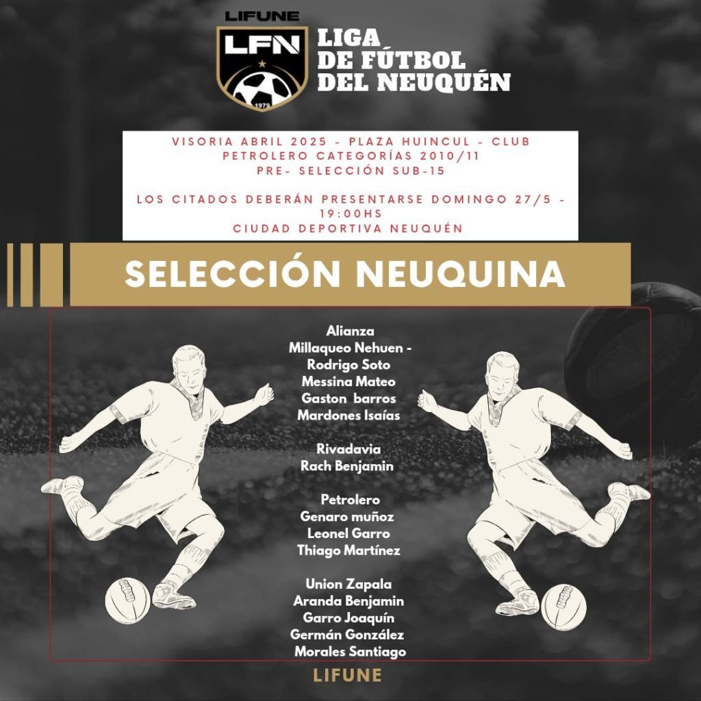 Del Tigre fue seleccionado Rach Benjamín. De Petrolero Argentino quedaron citados Muñoz Genaro, Garro Leonel y Thiago Martínez. Los jugadores de Alianza que fueron preseleccionados fueron Millaqueo Nehuen, Soto Rodrigo, Messina Mateo, Barros Gastón y Mardones Isaías.