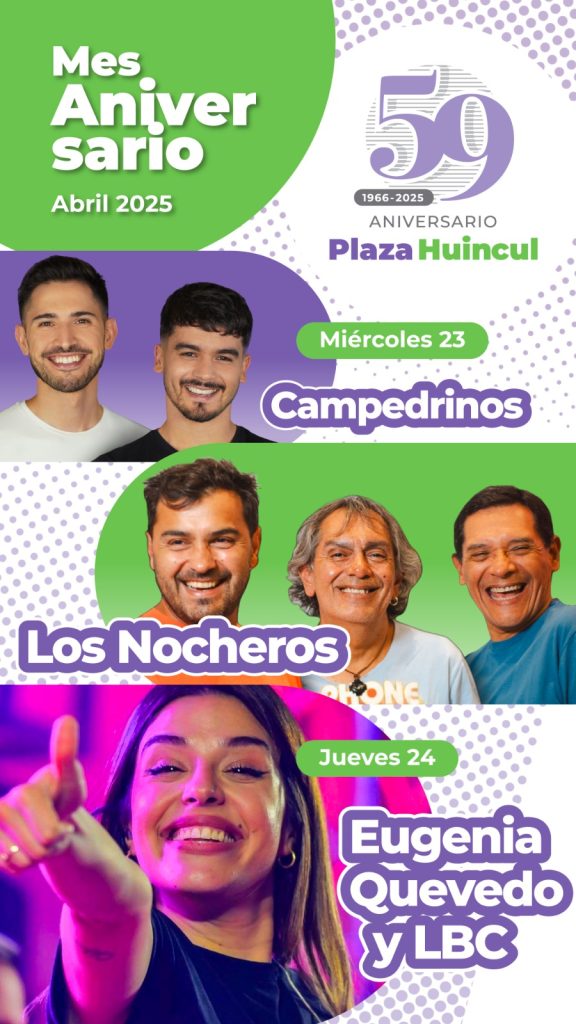 El próximo 24 se cumplirán 59 años de la institucionalización de Plaza Huincul y, como es habitual, habrá recitales con artistas nacionales de amplia trayectoria y para distintos públicos.
