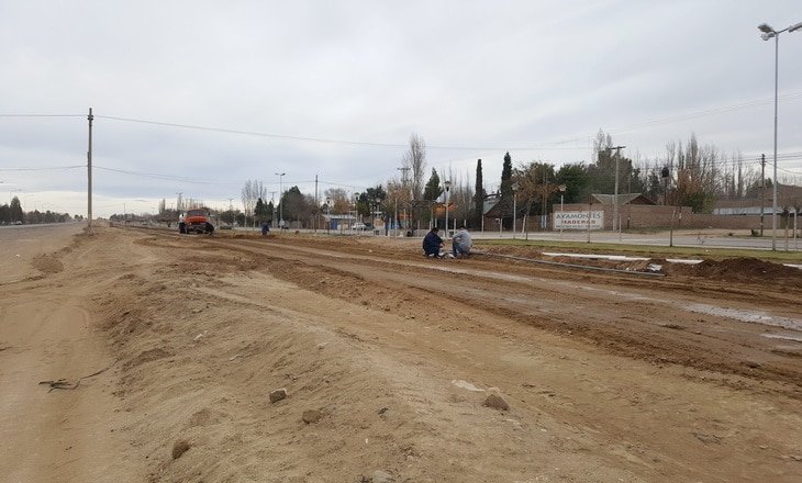 La primera etapa es la reforma del sistema de riego por goteo. Se informó que se instalará la cañería más profunda para permitir luego que se asfalte la zona.