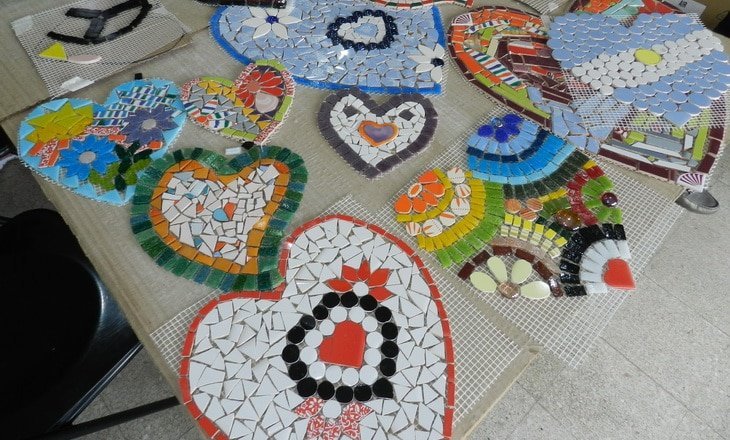 Los días martes 19 y jueves 21 comenzaron con la creación de corazones mediante la técnica de mosaiquismo, donde varios vecinos asistieron para participar.