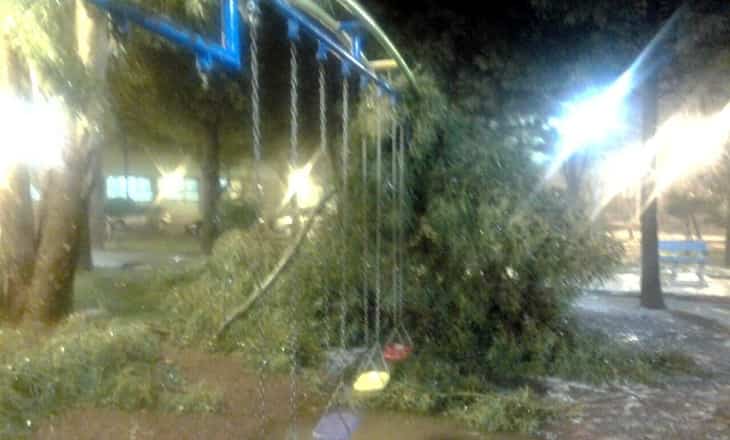 Estos cayeron sobre los juegos infantiles instalados allí, pero no causaron daño alguno. Sobre el bulevar de Olascoaga también ocurrió lo mismo, impidiendo el paso de peatones.