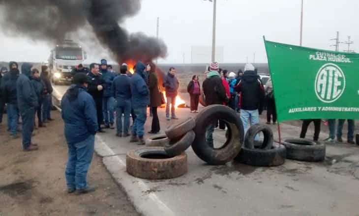 Los trabajadores que están en Salud, Epas, Población Judicializada y Auxiliares de Servicio bloquean la vía nacional a la altura del ingreso al parque termal La Curva, a unos 6 kilómetros antes de llegar a Huincul. Sólo pasan ambulancias y pacientes.
