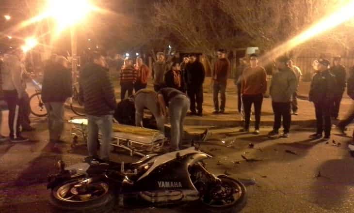 El accidente ocurrió poco después de las 22, cuando la moto iba de sur a norte por Eguinoa e impactó en la puerta delantera derecha de un Fiat Siena que trabaja como remís en la base Fenix.