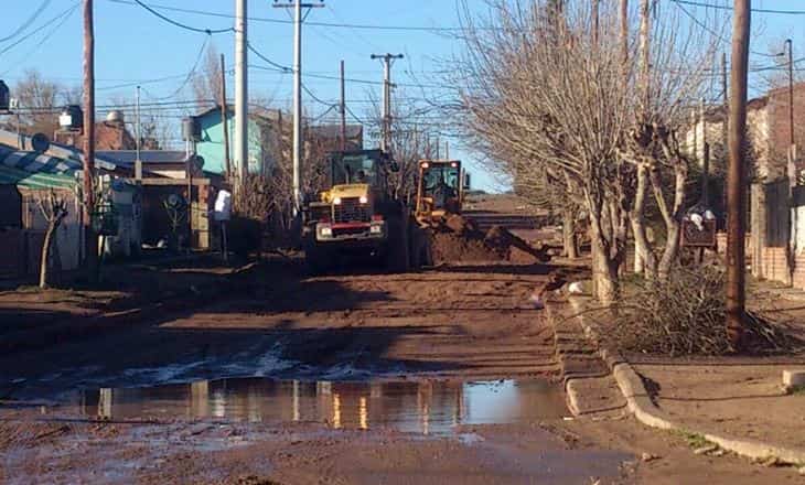 Las tareas de pavimentación en barrio Progreso se ven demoradas por las lluvias constantes en la región. Permanentemente se nivelan las calzadas a la espera de la capa de pavimento.