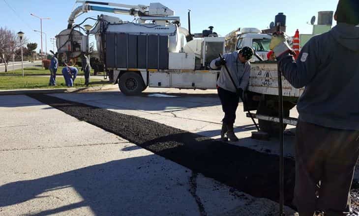 Después de varios tapones con tierra y ladrillo cerámico molido que aportaban arreglos transitorios, esta mañana se realizó el emparejamiento y luego se colocó la capa de asfalto para lograr un tránsito normal en la intersección de Eguinoa e Islas Malvinas.