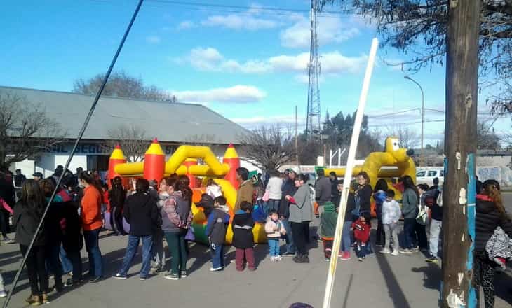 Como estaba previsto se cortó el tránsito, se instalaron juegos inflables y se repartieron panchos, gaseosas y golosinas.