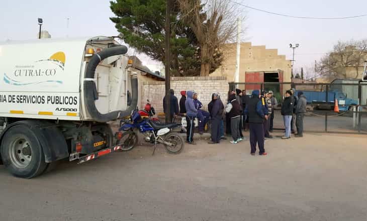 Son los trabajadores que se desempeñan en el programa “operativos barriales” de Cutral Co y que reclaman un incremento salarial, indumentaria de trabajo y la copa de leche. No pueden salir ni ingresar los vehículos del parque automotor de Servicios Públicos, aunque la recolección de residuos es normal.