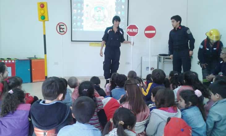 Allí los niños pudieron ver un simulacro que realizaron los bomberos para demostrarles lo que es una salida en caso de un llamado, también explicaron su labor y luego les dieron una clase de señalización.