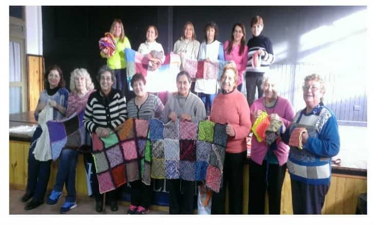En la jornada que organizó Red Solidaria, el domingo por la tarde, se confeccionaron cuadraditos de lana con los que luego forman frazadas. Se sumaron muchas tejedoras a la acción solidaria que dedicaron su tiempo a tejer para los más necesitados.