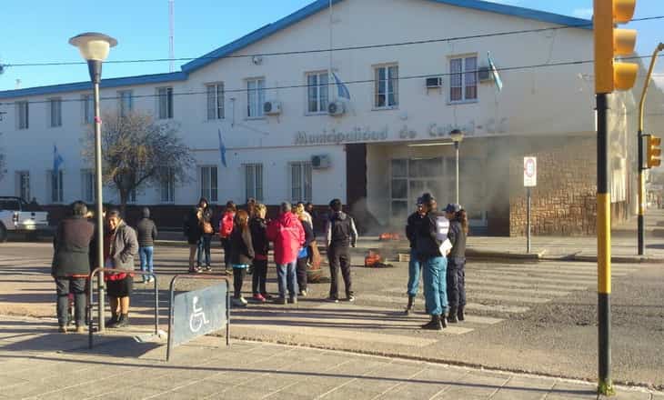 Un grupo de trabajadoras que cobran un subsidio municipal reclama un incremento cercano al 100%. Ayer hubo negociaciones con el municipio pero no llegaron a buen puerto y eso motivó que hoy endurecieran la protesta.