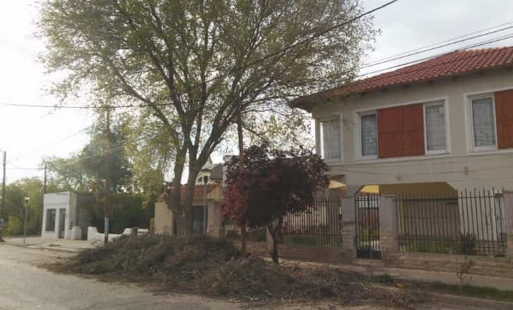 Al ser domingo, y no haber servicio de recolección, las ramas permanecerán allí probablemente hasta que en la semana el municipio pueda retirarlas. Lo que corresponde es contratar un contenedor de basura para colocar allí los restos de la poda o el servicio pago que ofrece el municipio de recolección con camiones para basura no domiciliaria.
