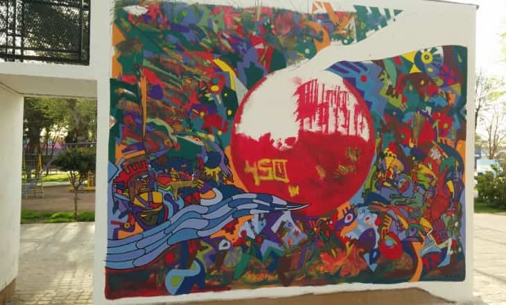 Desde hace un tiempo se realizan trabajos de reparación del monumento en la plaza. Estas tareas incluyen además la obra colorida del pintor en la plaza principal de Cutral Co. El mural está casi terminado, y en pocos días se podrá apreciar su distintivo arte bajo el mítico monumento.