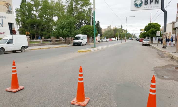 Colocaron cubiertas frente al edificio municipal y eso entorpece el paso, por lo que la policía desvía la circulación a los automovilistas que van por avenida San Martín en dirección Este hacia la rotonda para que sigan por Central.
