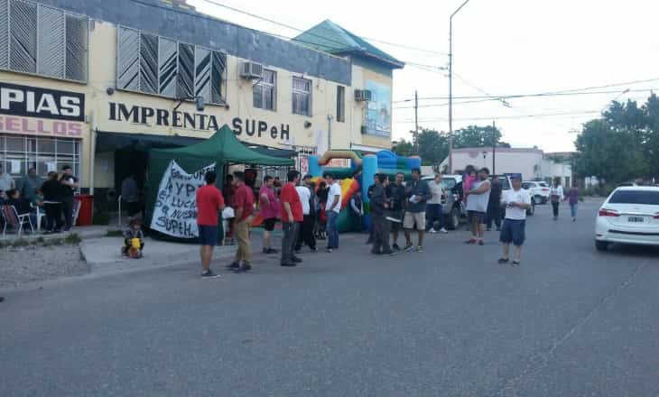 Se sostiene la protesta frente al gremio Supeh en reclamo de elecciones y renovación de autoridades. Ayer además de denunció que los trabajadores de la imprenta ganan casi 50 mil pesos.