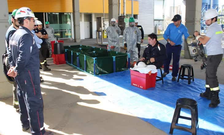 Durante el fin de semana se realizaron dos jornadas de prácticas en la planta de la empresa CCU de Pillanlelbún, en las que se incluyeron identificación de peligros, la utilización de trajes encapsulados y equipos de respiración autocontenida y donde no solo se ensayó el trabajo con distintos tipos de productos químicos, sino también se aprendieron técnicas de descontaminación y trabajo nocturno en una cámara de humo.