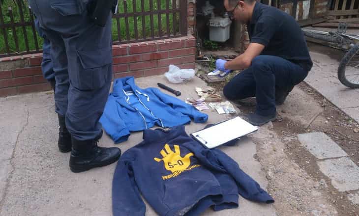 El delincuente portaba el cuchillo y el dinero e intento despojarse de dos buzos y su bicicleta para despistar a los uniformados, pero fue aprehendido y los elementos secuestrados. Su cómplice logró escapar en primera instancia pero al cabo de unos minutos fue atrapado en la esquina de Perito Moreno y Principal Sáez.