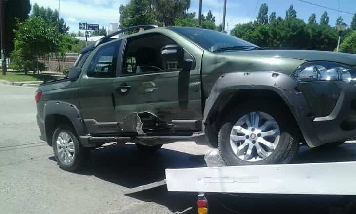 La camioneta de menor porte recibió el impacto en la puerta delantera derecha mientras que el otro rodado en la delantera.
