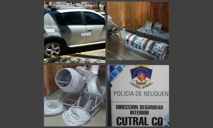 El procedimiento se desarrolló ayer por la tarde en una vivienda de barrio Daniel Sáez luego de que el lugar pasara un tiempo bajo consigna policial. Se trató de una investigación por un robo ocurrido el miércoles pasado en calle Angeleri del barrio Ruca Quimey y allí fue posible el secuestro de herramientas y materiales de construcción como hormigoneras, membranas y palas entre otros elementos. Además incautaron un Renault Sandero Stepway que habría sido identificado al momento del robo.