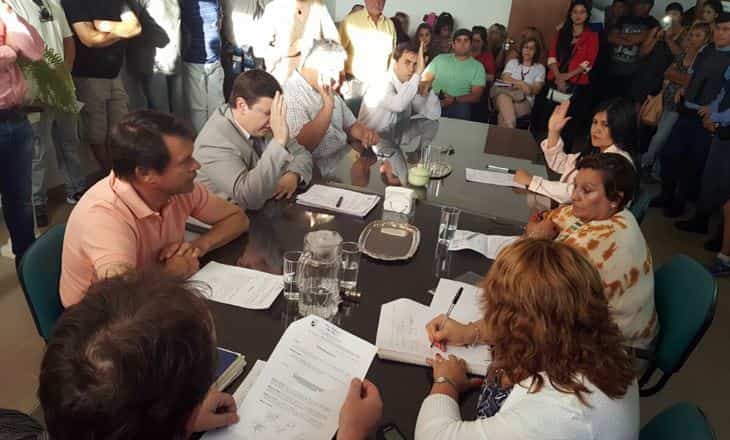 Media hora después de convocada, se dio inicio a la sesión que tenía como primer punto a tratar el proyecto de comunicación con el acta de la sala Acusadora rubricada por los ediles Carlos Matzkin y Gustavo Iril quienes proponen la suspensión del jefe comunal sin goce de haberes.
