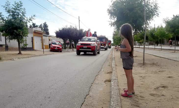 La salida fue desde el cuartel y desde allí, inició su periplo por las diferentes barriadas de Plaza Huincul, donde los chicos que escuchaban desde lejos las bocinas, salieron a saludarlo.