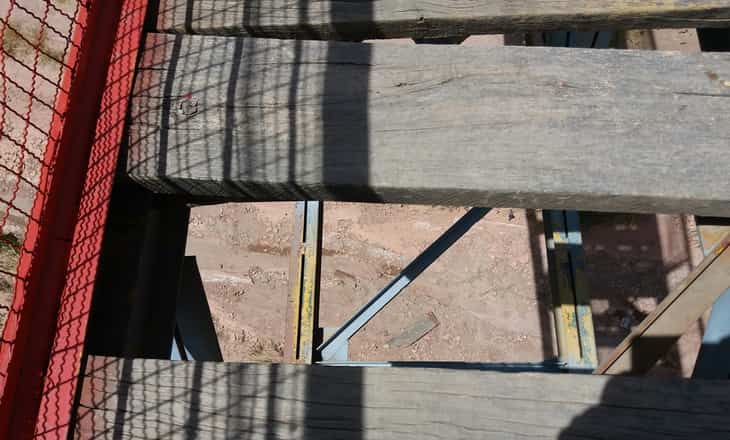 Se trata del tramo peatonal que conecta a los barrios 25 de Mayo y Ruca Quimey sobre el canal colector. Los tablones acusan un deterioro por el tiempo y algunos cayeron dejando espacios en blanco que representan un gran peligro.